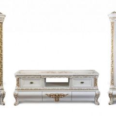 Гостиная Алсу 2+2 белый глянец - состоит из тв тумбы и двух двухстворчатой витрин, поистине королевская мебель созданная на фабрике ЭРА-Мебель. Алсу отличается максимально светлым тоном выкраски и глубокой золотой патиной.
